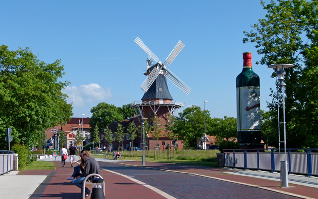 Das Wahrzeichen von Norden steht am alten Hafen. Die Mühle befindet sich in Privatbesitz.